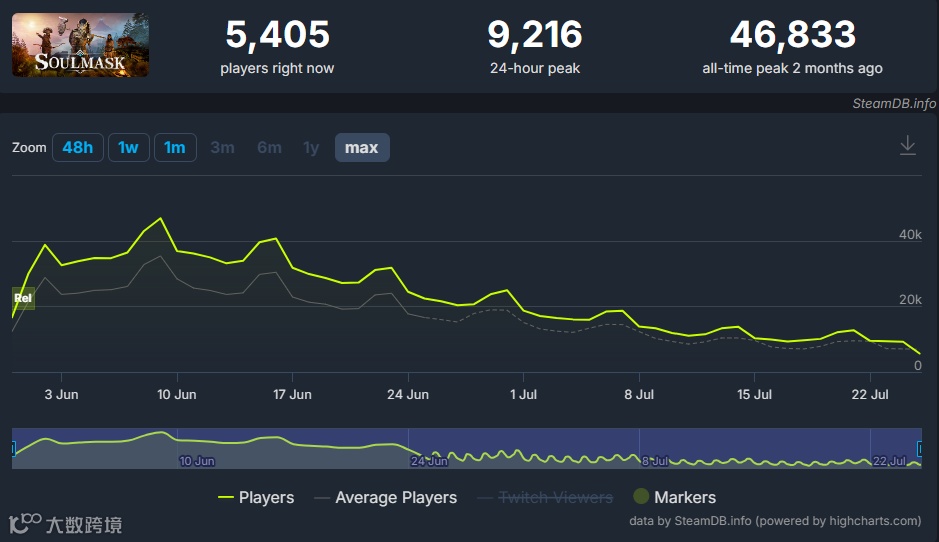 目前,《灵魂面甲》在Steam上的好评率为78%,其中欧美地区玩家好评率超过87%。游戏上线一周时在线人数达到近4.7万人的峰值,当前稳定在约1万人。