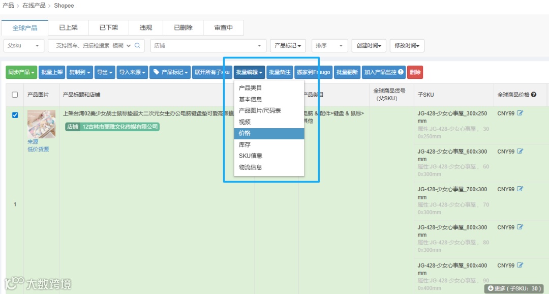 ① 泰国卖家应尽快报名「免费配送计划」,并通过ERP批量改价功能同步调整售价。