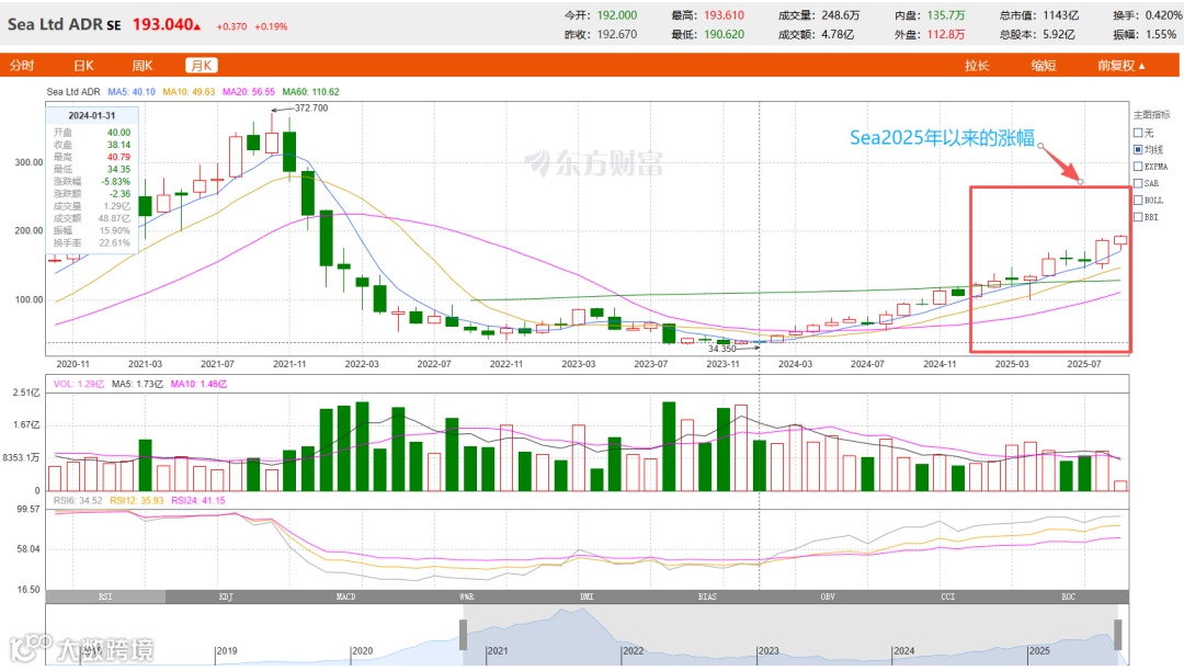 今年以来,Shopee母公司Sea股价累计涨幅达79.61%,引发市场广泛关注。