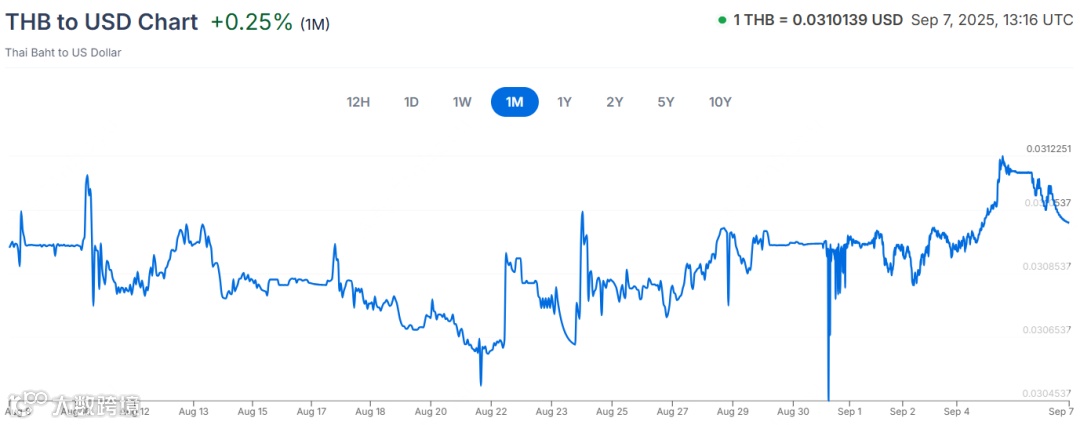 受美国降息预期推动,泰铢近期升值,并受益于亚洲货币整体走强及国际金价突破3,500美元/盎司。预计下周泰铢兑美元将在31.80–32.80区间波动,需关注泰国新政府组建进展、8月通胀数据、外资流向及黄金价格走势。