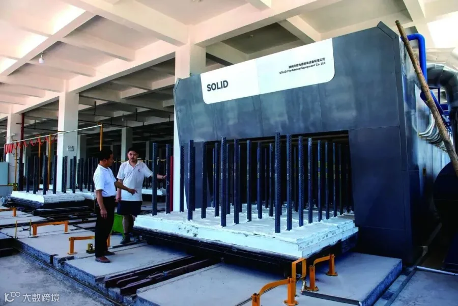 在静电釉生产线上,工人正在装坯和取坯,装好的陶瓷经过静电釉生产线,便可完成陶瓷的表面装饰,出来便是一个成品,可直接送往包装车间,省去了传统陶瓷生产线上的彩绘、上釉等步骤。而在一旁还有一条高1.3米、宽3.2米、总长度为89.5米的全自动隧道窑。“相比于传统的窑炉,全自动隧道窑最大的优势在于可以精准控制温度,各个环节的温差、耗能等都可以体现在后台,方便管理人员随时调整。并且一条全自动隧道窑的产量相当于3条普通窑炉的产量,大大提升了公司效益。”同鑫陶瓷有限公司烧成车间主任陈明耀表示。