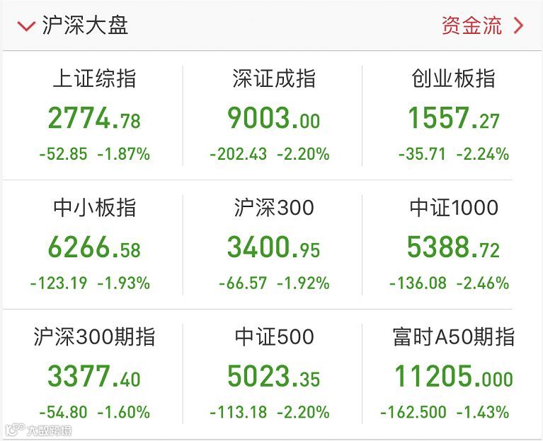 股市方面:沪指下跌1.87%,深成指下跌2.2%,创业板指下跌2.24%,恒生指数跌1.44%;亚太市场也出现集体回调,日经指数跌逾1%,韩国综合指数跌逾0.4%;