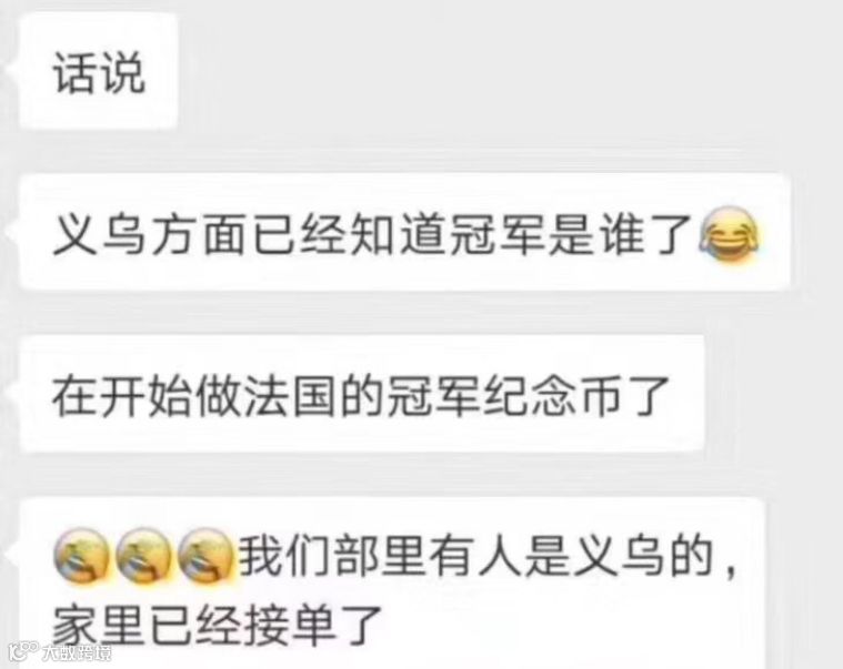 伴随着法国队夺冠,本届世界杯的赢家除了时隔20年再夺世界杯冠军的法国队,还有义乌老板。