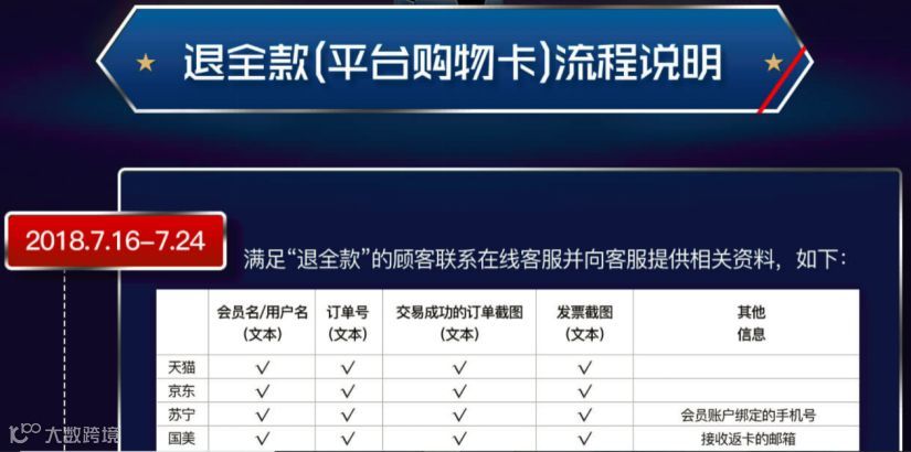 需要注意的是,退款方式并不是现金,而是天猫超市卡、京东E卡、苏宁礼品卡或者美通卡。