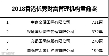同样是今年新增加的面向香港地区公司的“2018香港财富管理机构君鼎奖”,则比较平均,排名最前和最末的相差不到4倍。