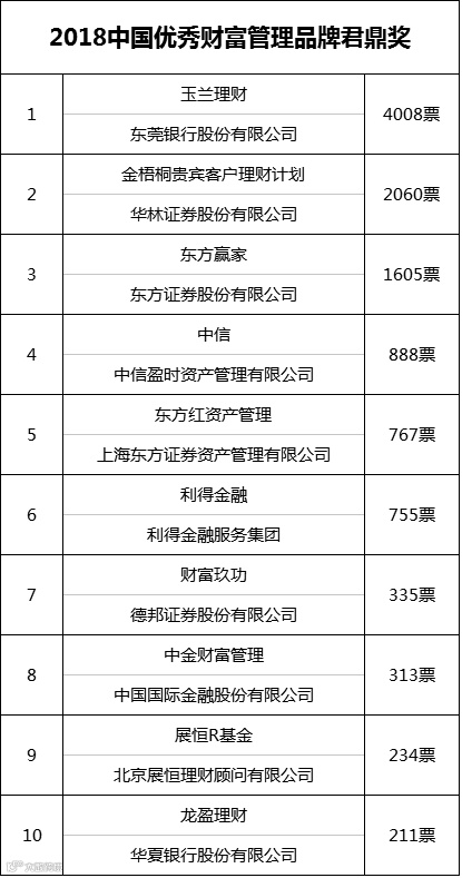 “2018中国优秀财富管理品牌君鼎奖”是对注重打造品牌的公司一次很好的宣传。东莞银行的玉兰理财稳居票数第一,比排名第二的公司品牌多出近2000票。