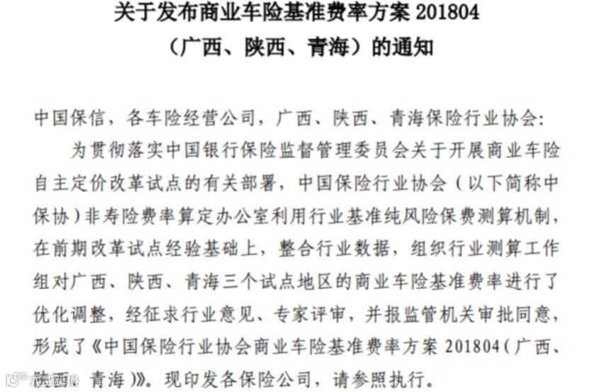业内人士分析,此前监管部门曾召集部分财险公司相关业务负责人召开沟通会,就广西、陕西、青海等三地商业车险费率进一步放开一事进行沟通。