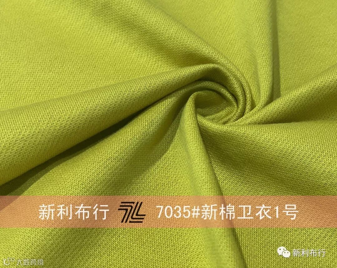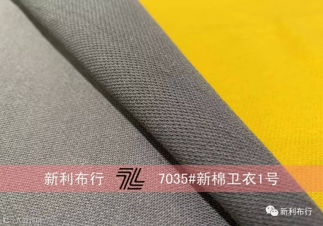 这期新利特意推出一款薄款丝光卫衣——7035#新棉卫衣1号(幅宽175cm,克重220g)。
