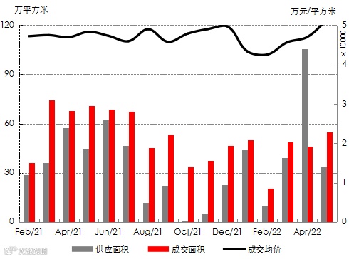 上海中原地产数据显示,5月供应出现大幅跳水,供应面积仅33.6万平方米,环比减少68.2%,是今年的第二低。从结构来看,仍是刚需以及首次改善类产品。