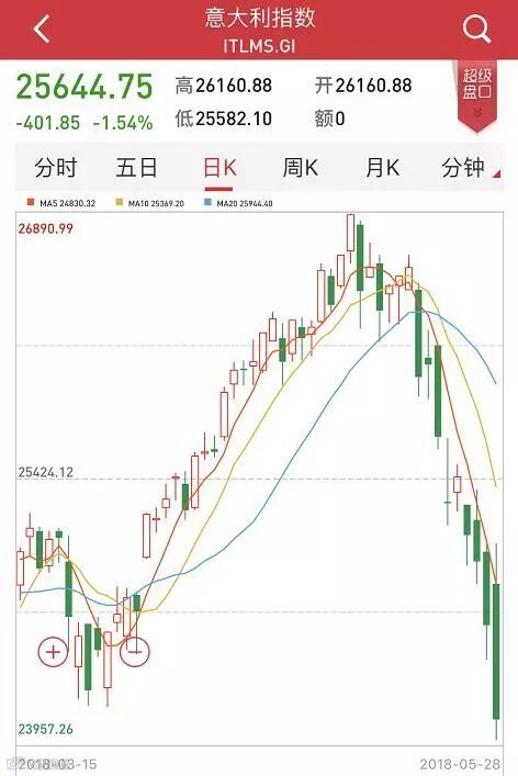 5月以来,投资者对意大利政局担忧日益加剧,意大利股票市场和债券市场都出现新一轮抛售浪潮。5月29日周二,意大利金融市场再次股债齐跌,市场交易情绪低迷。