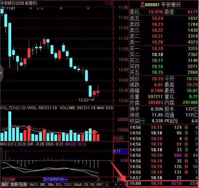深交所股票——平安银行,14:57过后再无交易,直到15:00收盘,才有一笔交易。