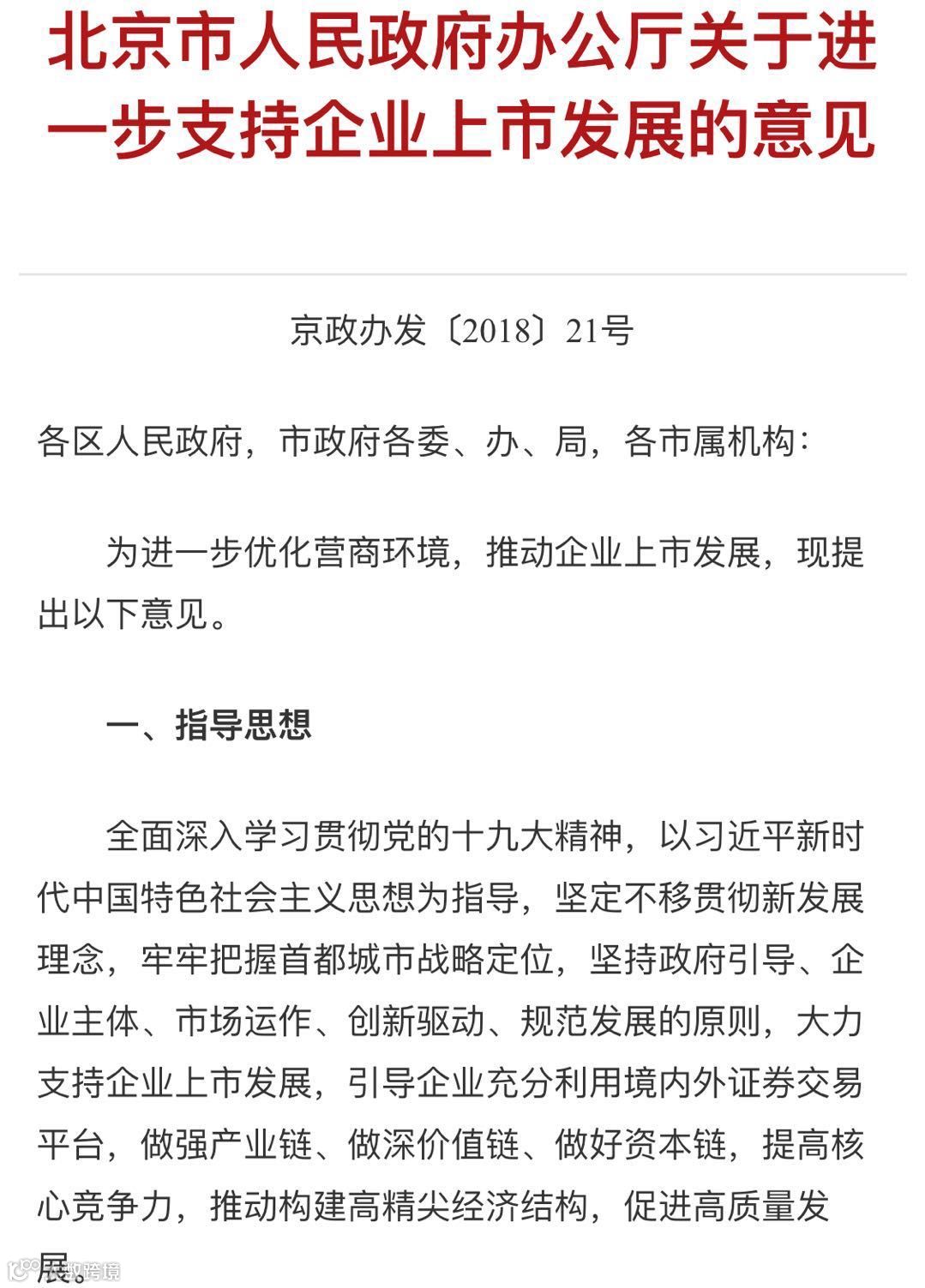IPO企业补贴可高达600万、股份改造开辟绿色通道、税收还有优惠…北京为了支持辖区企业上市也是拼了!
