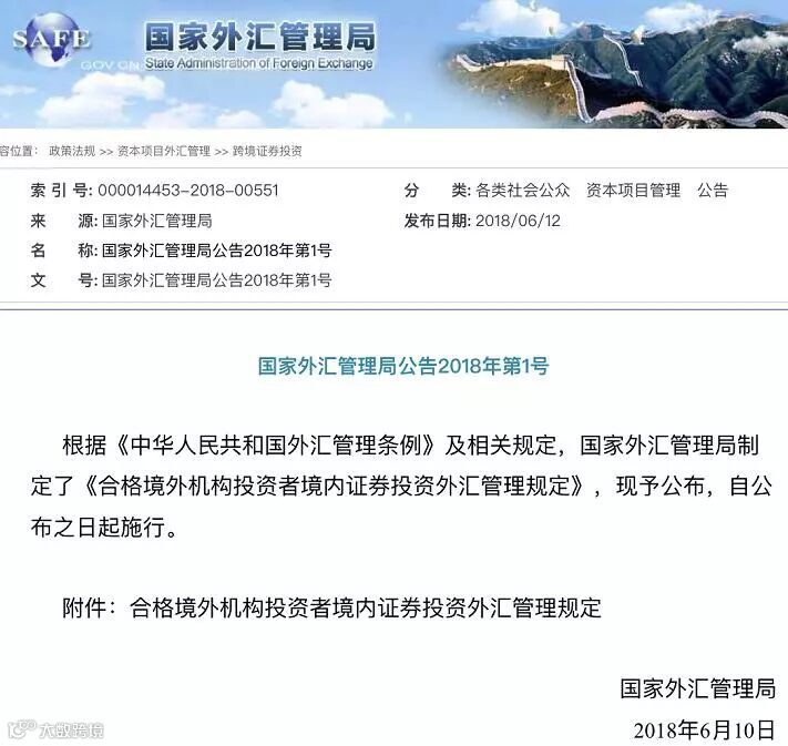 6月12日,央行、国家外汇局发布新规,宣布对合格境外机构投资者(QFII)和人民币合格境外机构投资者(RQFII)实施新一轮外汇管理改革,以进一步简化管理、便利操作,进一步扩大对外开放。