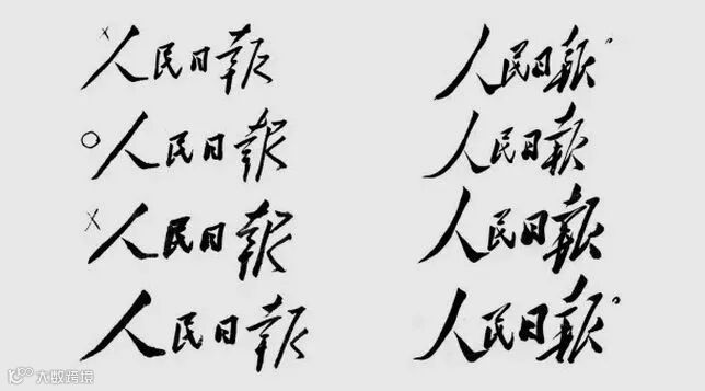1946年(左)和1948年(右),毛泽东两次为人民日报题写报头,并圈选了比较满意的