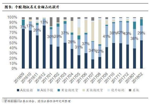 国信证券经济研究所金融团队指出,去年结构性牛市行情,激发了私募基金场外个股期权的需求,为券商贡献了不少收入,尤其是个股期权。从期权合约标的构成来看,2017年以来,个股期权的名义本金占比提升至30%左右,期权费占比提升至80%左右,而2016年10月之前两者占比都低于10%。