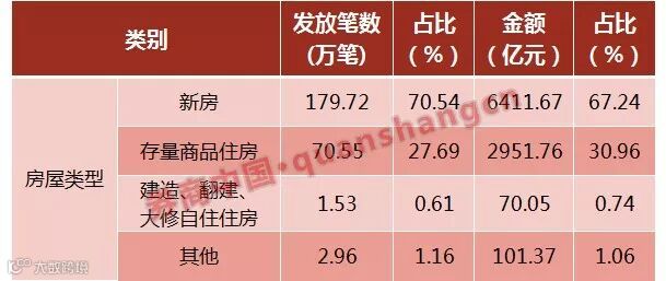2017年公积金贷款房屋类型中,新房的占比高达67.24%,远远超过二手房和装修等比例。
