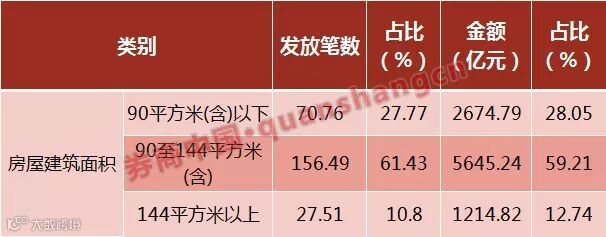 在公积金贷款房屋建筑面积上,超过144平的豪宅只占12.74%,看来有钱人比较少用公积金贷款(这和数据15相呼应);90至144平的户型占比接近六成。