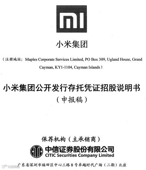 1、小米CDR的保荐机构为中信证券,拟上市地为上交所;H股上市则由高盛、摩根士丹利以及中信里昂证券联合保荐。