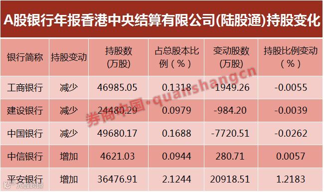从已披露的银行年报来看,香港中央结算有限公司(陆股通)对银行股份的增减情况,总体上呈现出上半年加码、下半年减持的现象。