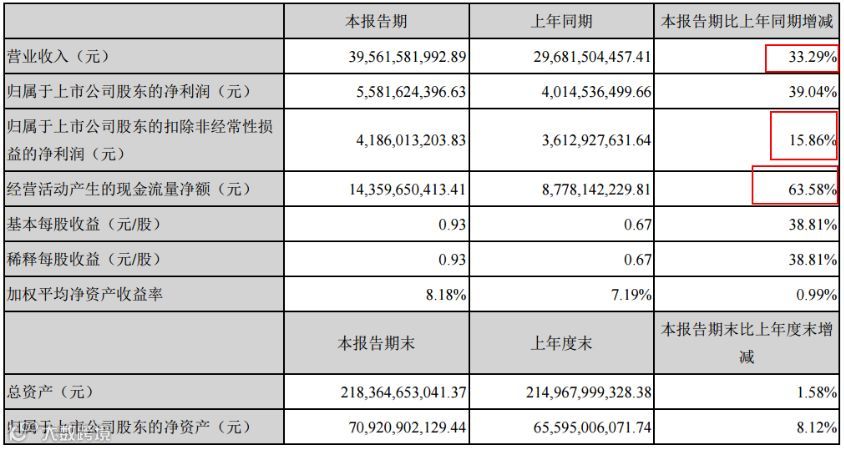 此外,格力电器也在今晚发布了2018年一季报,今年前3月共实现营收395.62亿元,同比增长33.29%,实现股东净利润55.82亿元,同比增长39.04%,基本每股收益达到0.93元、同比增长38.81%。