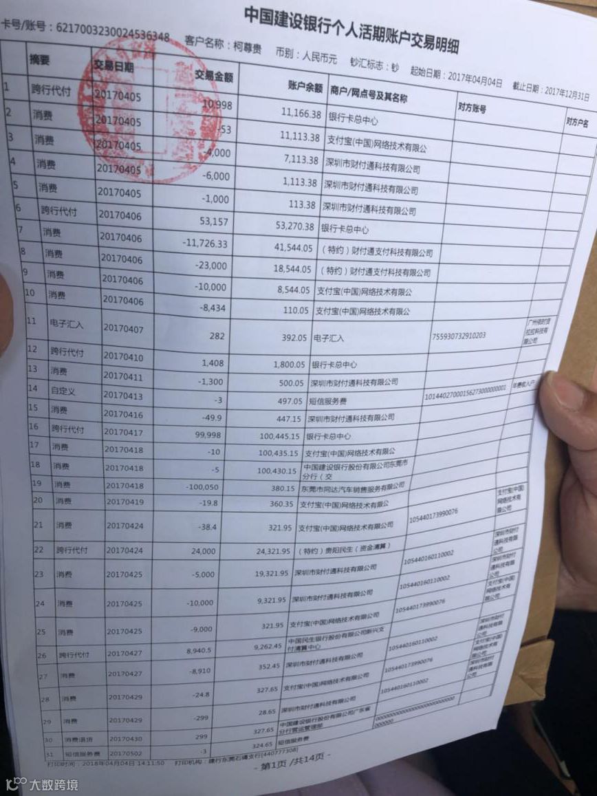 商户柯先生出示的交易明细和资金往来银行流水单,称其有二十多万元未到账。