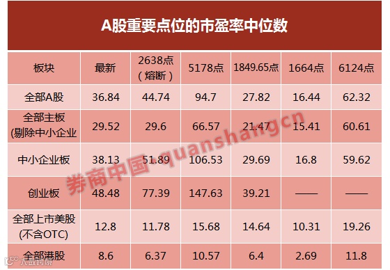 在这种估值视角下,我们可以看到一个有趣现象。在上一轮牛市顶点、2015年的5178点时,A股的市盈率中位数曾达到94.7倍,这一数值实际上已经超过2007年的6124点的62.32倍。