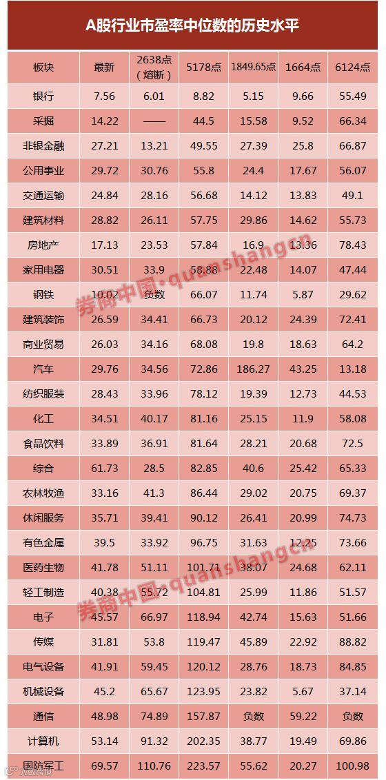 就板块估值来看,当前有12个板块的市盈率中位数低于30倍,有4个板块的市盈率中位数低于20倍,其中银行、钢铁和采掘最低,市盈率中位数分别为7.56倍、10.02倍和14.22倍。