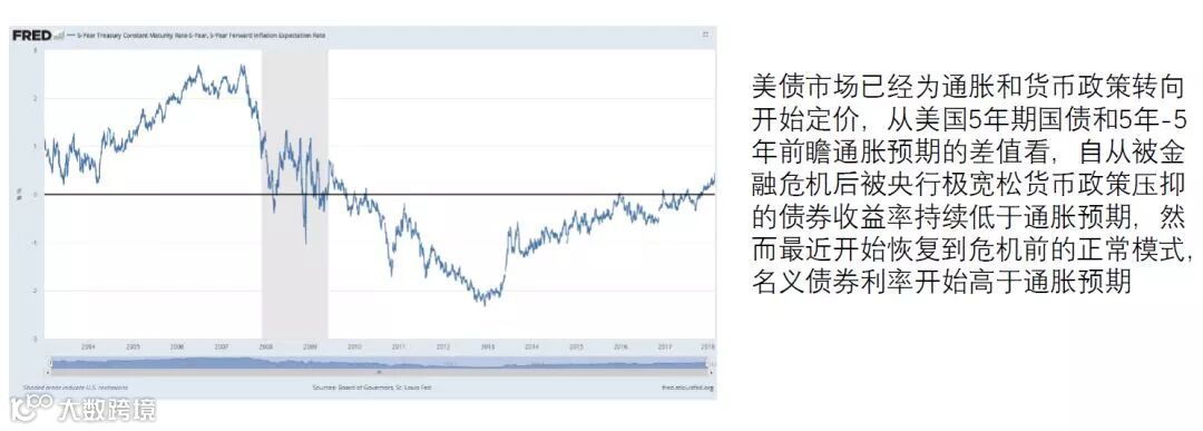 ✪ 美债市场已经为通胀和货币政策转向开始定价,债券收益率最近开始恢复到金融危机前的正常模式,名义债券利率开始高于通胀预期。