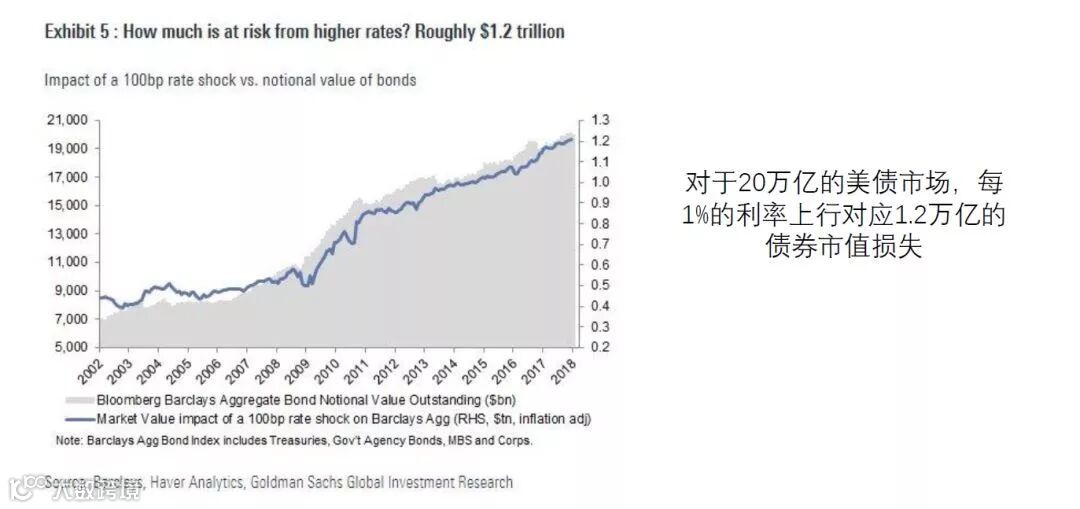 美国90年代的科网泡沫破裂后,通过房地产市场的泡沫支撑经济回升,但带来了2007年的次贷危机,随后超常规的量化宽松政策通过刺激股债泡沫修复企业和居民的资产负债表。当前金融周期阶段显示股债泡沫持续在创新高。长久期资产对利率波动的敏感度较高,尤其当价格在高位,利率上行对资产价格波动性冲击较大。