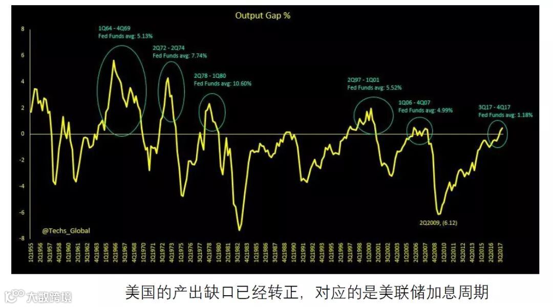 产出缺口从总体供需的角度评估价格上行的压力,美国及OECD发达国家均开始转正,新兴市场步伐各异,但总体趋势也是现实缺口也在转正。