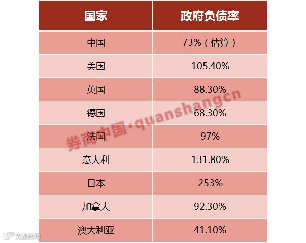其实,全球主要国家政府负债率都是高高在上。我们来看看大致的情况。