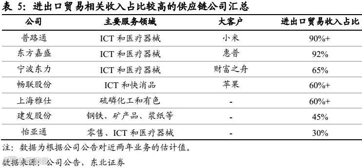 基于收入结构来看,由于自由贸易港主要影响进出口贸易,从而供应链企业服务进出口业务的占比越大,其受益于自由贸易港的确定性更大。