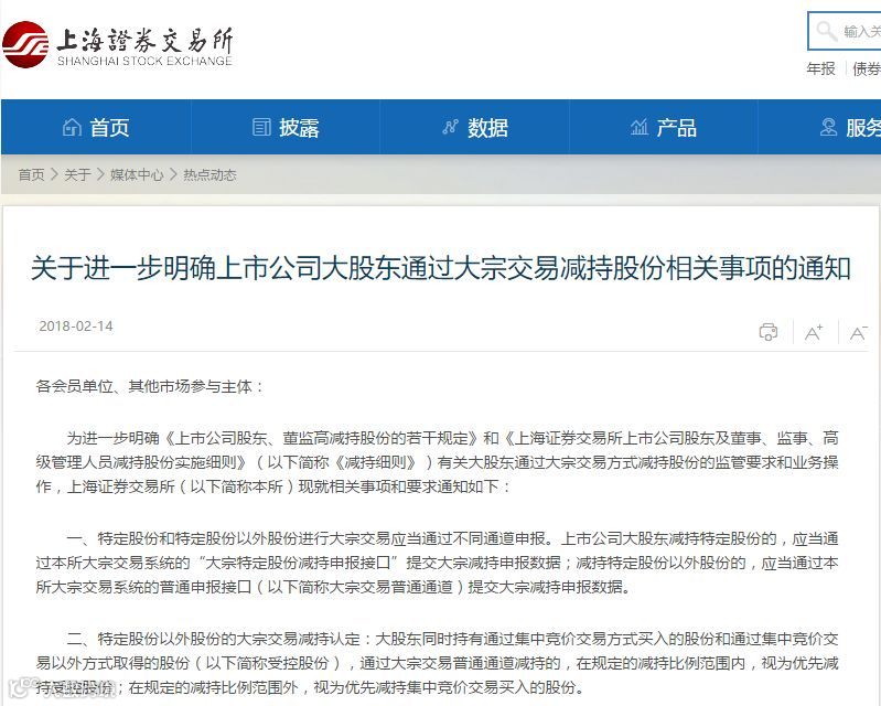 今天是春节前最后一个交易日,上交所发布了关于进一步明确上市公司大股东通过大宗交易减持股份相关事项的通知。