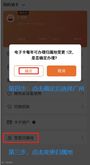 教师卡享受每升0.29元的优惠开卡地须为广州,否则无法享受优惠。异地开卡变更方式为应用商店下载“中油好客e站”后按照如下方式进行操作: