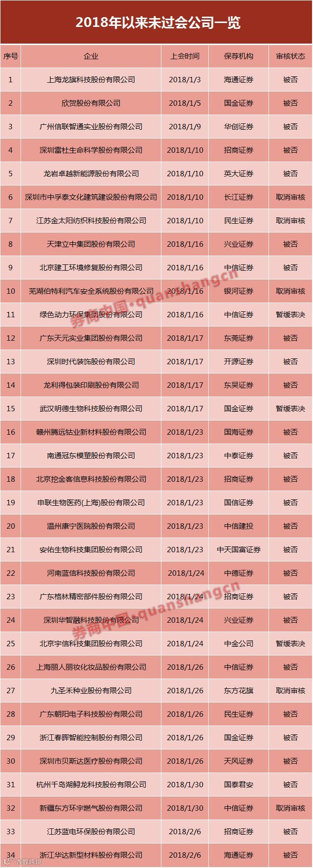 截至2月6日,今年以来发审委共审核56家企业,过会仅22家,26家被否,5家取消审核,3家暂缓表决,过会率为39.28%。