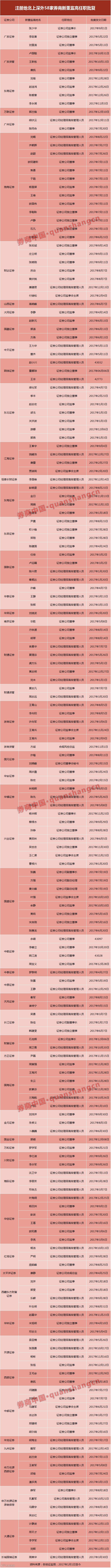 注册地在北上深以外城市的58家新董监高任职批复的券商中,华泰证券、浙商证券、东北证券、渤海证券、财通证券、天风证券、国盛证券、财达证券等券商均迎来了新的少壮派高管。