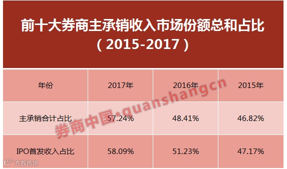 据券商中国记者统计,近三年来,IPO主承销收入前十大券商的市场份额从47%到51%、再到58%。