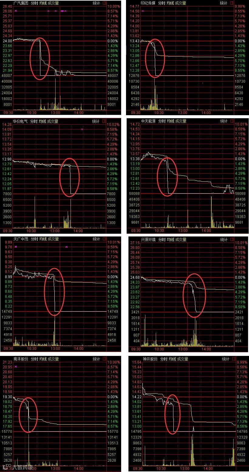 据不完全统计,广汽集团、和佳股份、印纪传媒、中天能源、小康股份、商赢环球、华仪电气、香溢融通、激智科技、南洋股份、长缆科技、天广中茂、亿利达、万方发展、神开股份、三圣股份、安通控股、兴源环境、刚泰控股、德美化工、迅游科技、盛洋科技等超过30只个股盘中出现闪崩行情。