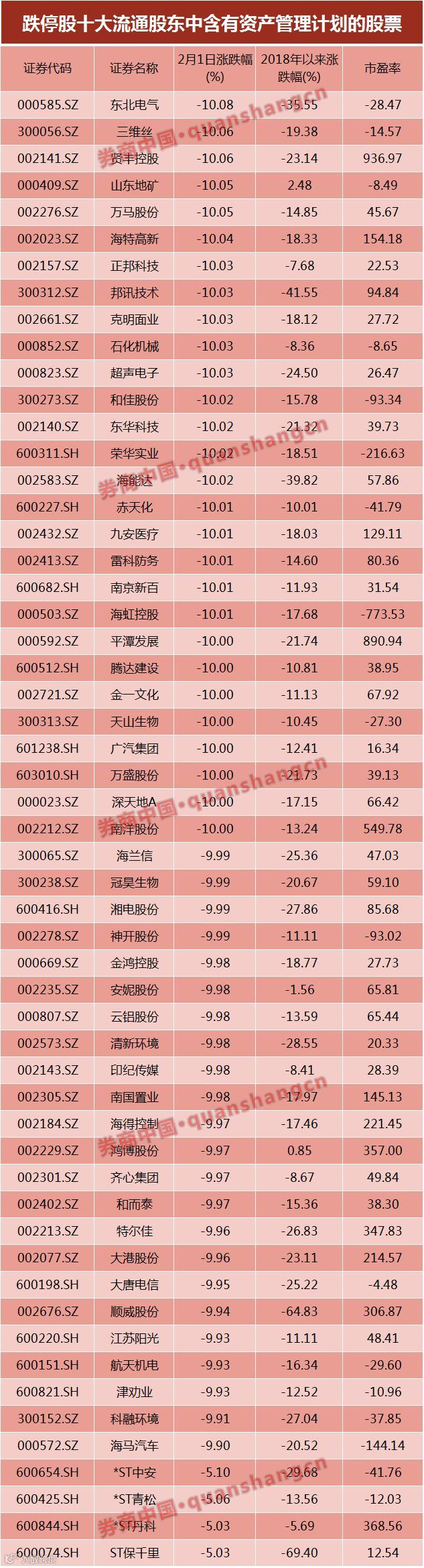 据统计,今日265只跌停股中,55只股票的十大流通股东中含有资管计划。