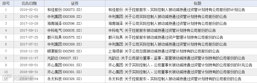 其实,和佳股份并不是A股第一例被动式清仓减持。去年12月8日晚间,中利集团也发布过类似的公告。