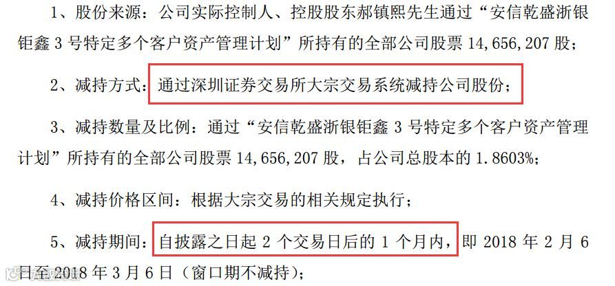 一是实控人并非通过二级市场进行减持,而是通过大宗交易进行减持,按照要求,要提前两个交易日进行公告,公告中也提到大宗减持时间是在2月6日至3月6日(窗口期不减持);