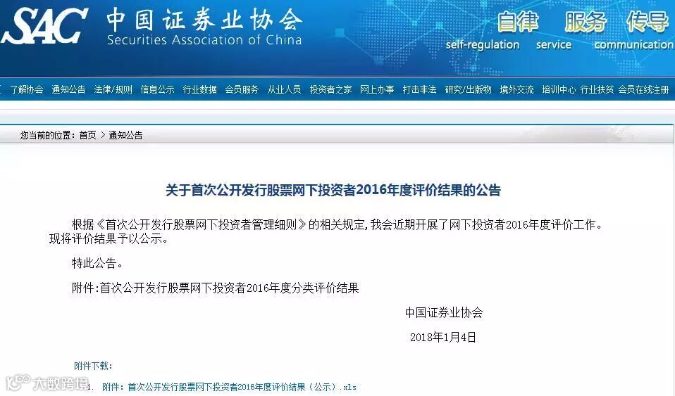 券商中国记者对比发现,相较于2014年和2015年的网下投资者分类结果的“如期发布”, 2016年网下投资者分类结果稍显“姗姗来迟”。原本应该于2017年4月份公布,却整整晚了近9个月, 2018年1月5日才对外公开。