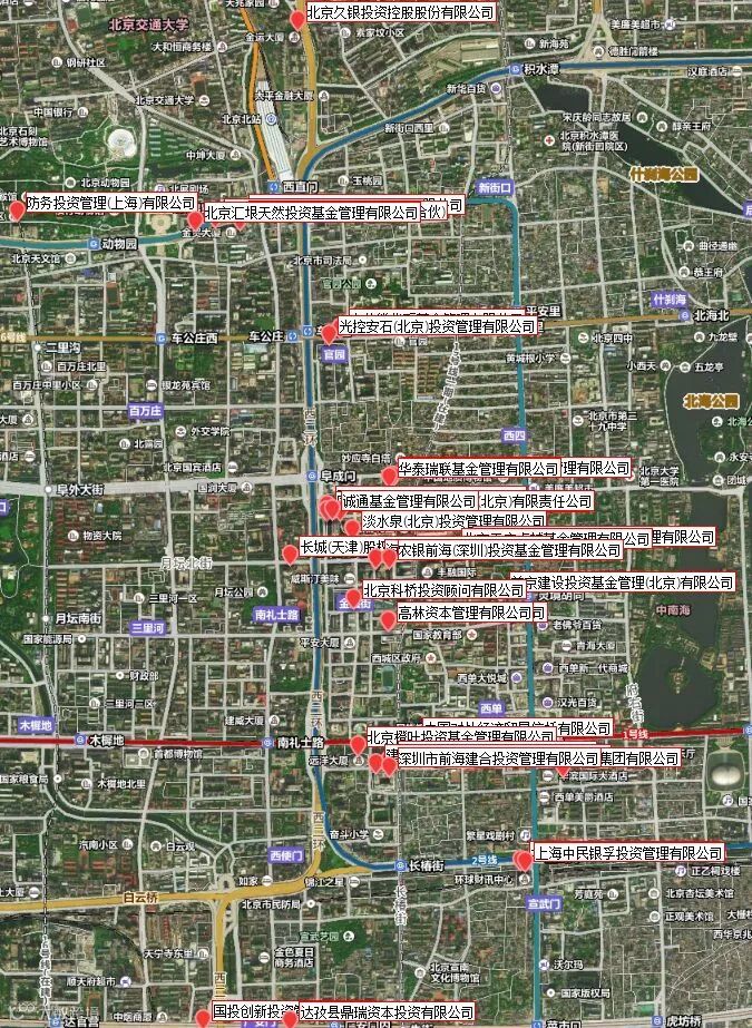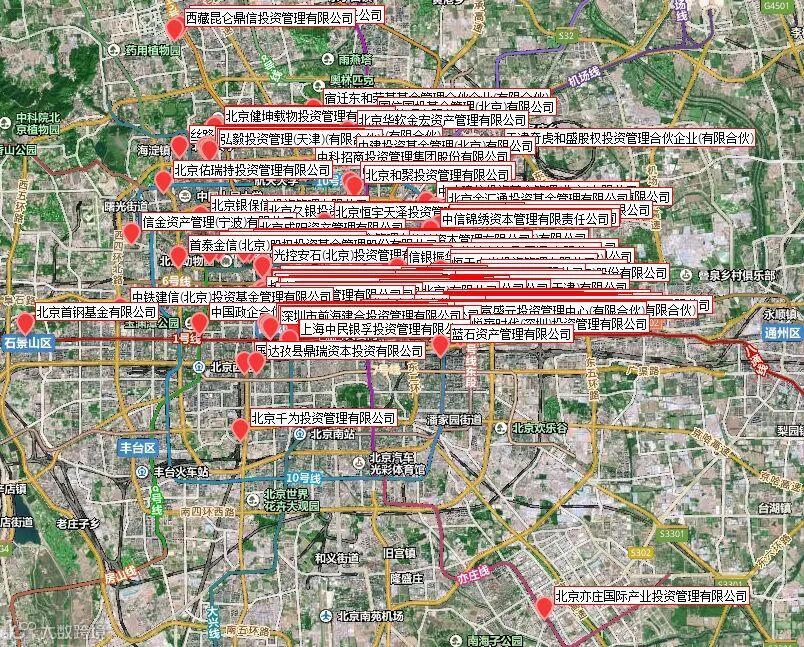 下面将北京重量级私募地图按区分别放大:(除上图已清晰显示公司名称的石景山、丰台及大兴等区)
