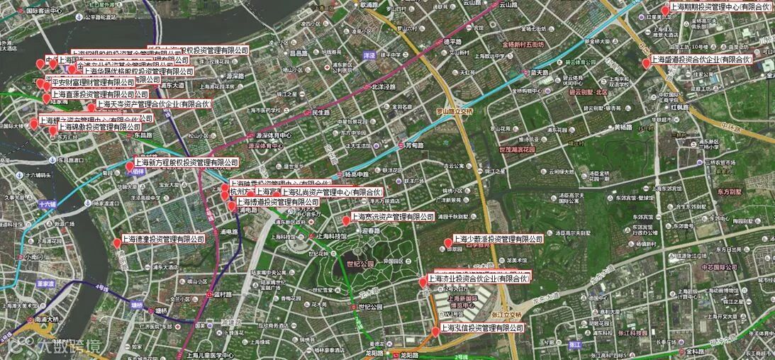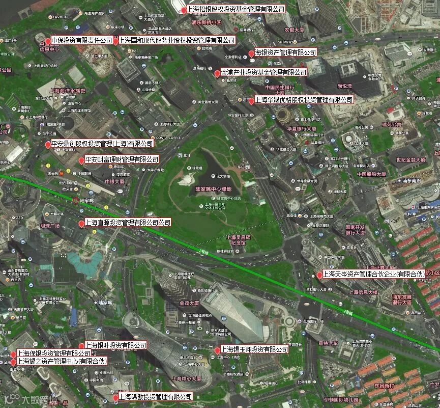 现将重量级私募分布较密集的陆家嘴中心绿地区域进一步放大: