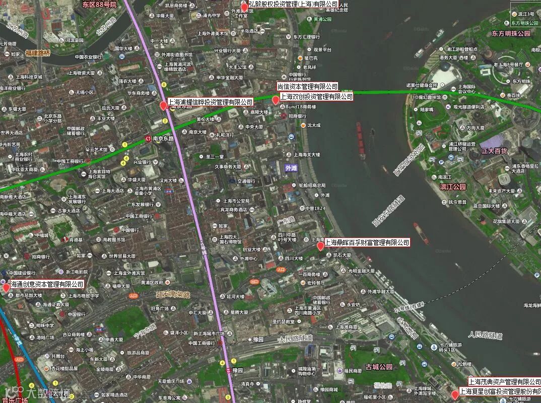 下面将浦东新区、黄浦区及静安区重量级私募地图分别放大。