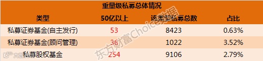 3.文中"重量级私募"系指私募证券基金(自主发行)、私募证券基金(顾问管理)及私募股权基金中至少一类规模在50亿元以上的私募基金公司。