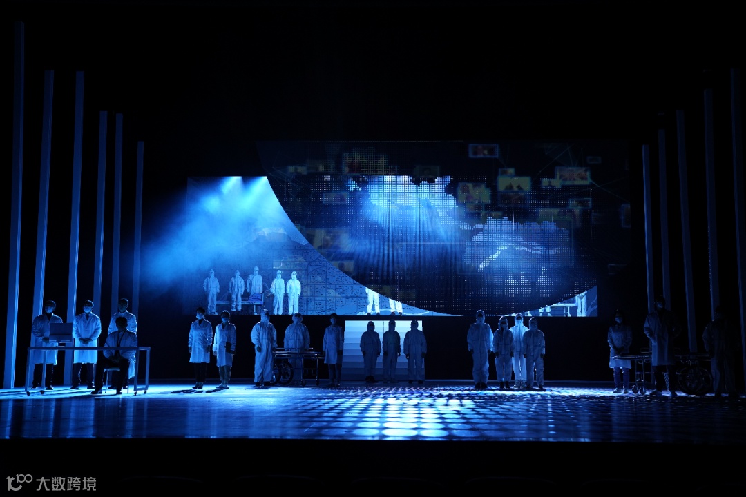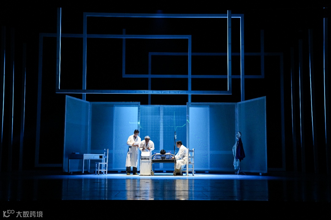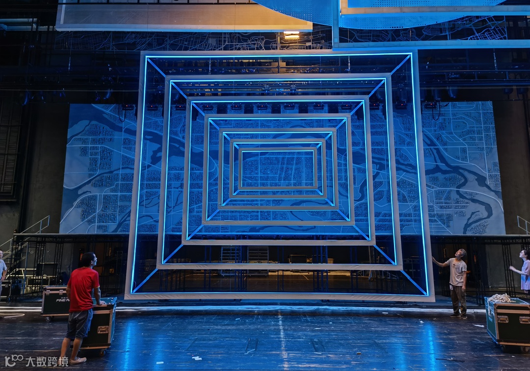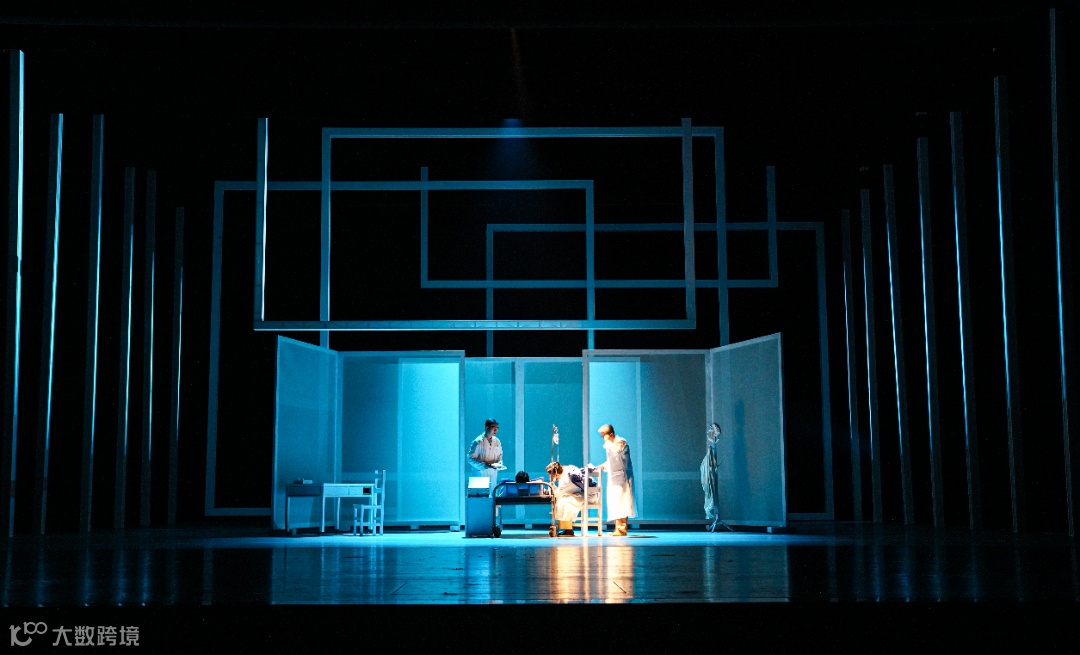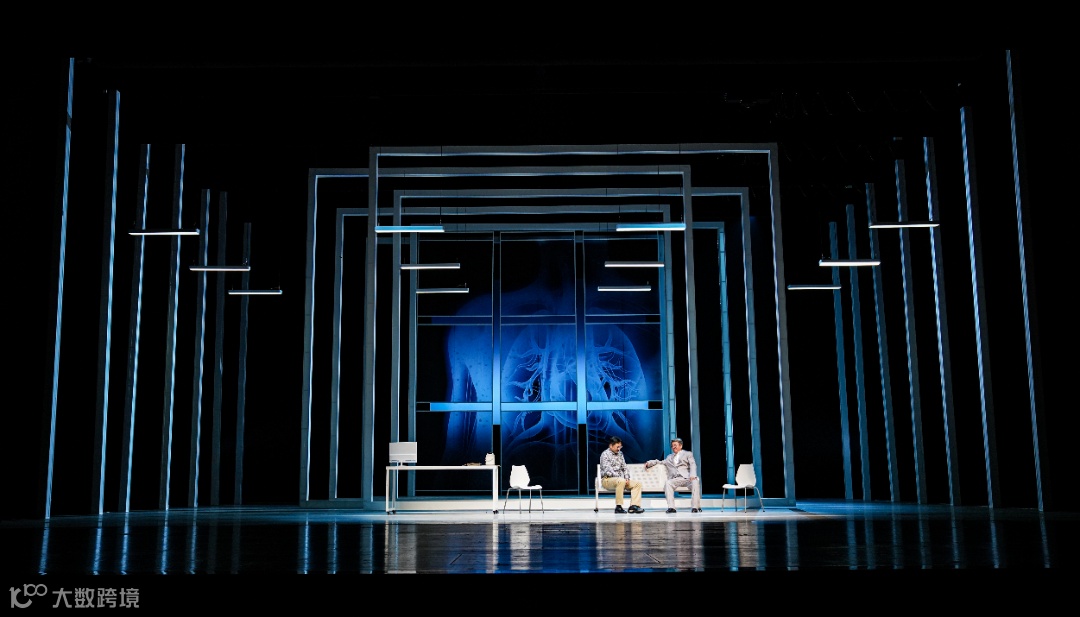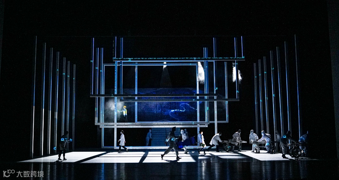话剧《呼吸》呈现了一个现代凝练的舞台,灯光上采用了十四根像素灯柱,营造出时间的速度与时光的流动感,时光飞逝光阴流转,不变的始终是临危不惧、敢医敢言的医者仁心。全剧由八组像素灯带方框打造出的可移动装置,在不断的运动变化中构成多层次的视觉空间,并通过多媒体与灯光的光影作用呈现出呼吸感与纵深感,让观众直面感受该剧的现代感和科技感。