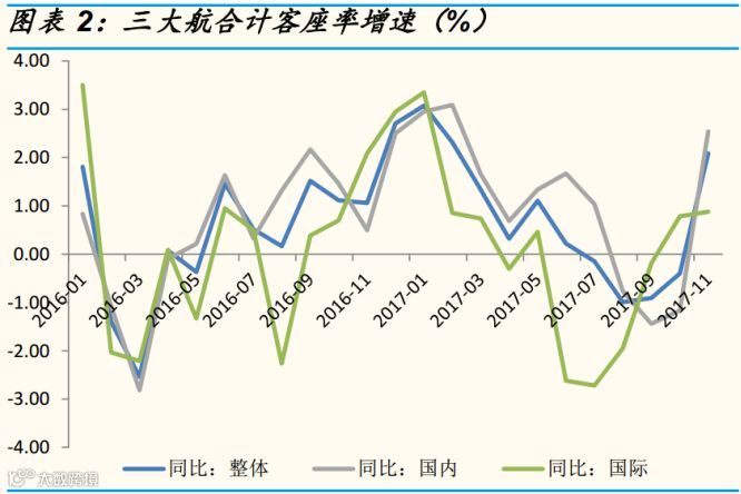 今后两年,航空公司客座率将进一步上升。供需格局将进一步扭转,单纯从引进飞机座位数的增量上看,2017年是11.8%,未来两年2018-2019年将下降至8.5%左右。