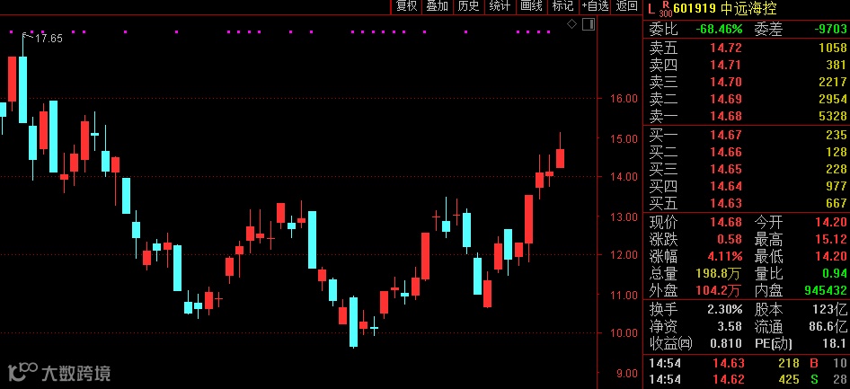 从市场表现来看,中远海控去年股价累计涨幅达到1.32倍,今年以来继续维持震荡上行,年内涨幅约20%。