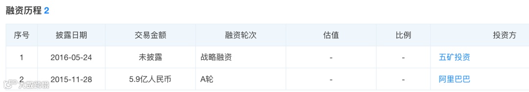 天眼查APP数据也显示,2015年11月,阿里巴巴曾以5.9亿元人民币的资金,对五矿电商进行A轮融资,按照持股比例为44%计算,则当时的五矿电商估值已达13.41亿元人民币。
